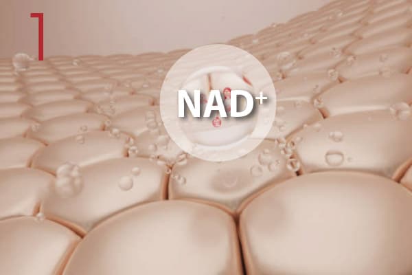 NAD+ promotes the regeneration of healthier, younger-looking skin cells. It increases collagen and elastin synthesis, strengthens the skin barrier, reduces oxidative damage from UV and pollutants, and improves skin texture and tone.